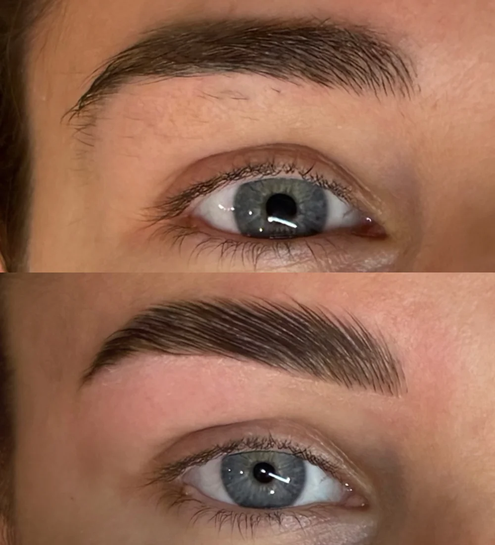 Cette technique offre un aspect plus fourni et structuré, idéal pour celles et ceux qui ont des sourcils clairs ou clairsemés.